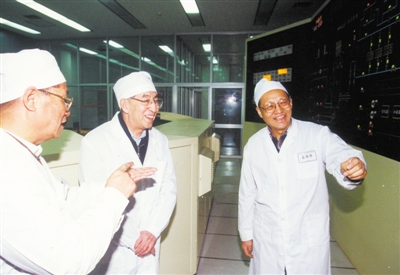 2000年12月1日,王大中(中)、吴宗鑫(右)在清华大学10兆瓦高温气冷堆临界现场。