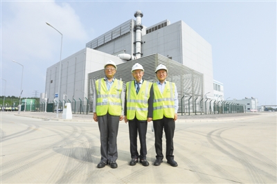2021年9月12日,王大中(中)、吴宗鑫(左)、张作义(右)在山东石岛湾高温气冷堆示范工程现场。本版图片均由清华大学供图
