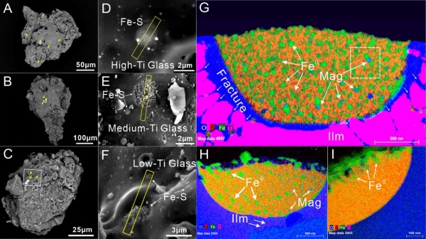 午夜av 地球化学研究所李阳团队对嫦娥五号月壤中硫化铁颗粒的微观特征展开了系统的分析工作,发现了赋存于硫化铁颗粒内部大量的亚微米级磁铁矿。原位微区工作发现,该类磁铁矿颗粒的撞击诱导成因,以及与硫化铁颗粒所嵌入的玻璃含钛量之间的正相关关系。同时,研究在约200个撞击玻璃的表面发现了7个富集磁铁矿的液滴状硫化铁颗粒。这一现象是普遍的但存在一定的概率,且其形成环境符合撞击过程及钛含量富集的规律。这种赋存于硫化铁颗粒中的磁铁矿提供了在阿波罗时期发现的亚微米级“类磁铁矿”相的原位矿物学证据,表明撞击诱发的亚微米级磁铁矿可能在月球的高钛区域普遍存在。