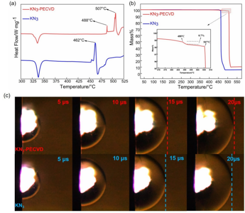 2004年以来,虽然已有高压下合成立方偏转聚合氮的相关研究,但无法将高压合成的立方偏转聚合氮截获到常压,且降压过程的分解机制尚不明确。2017年,有研究采用等离子增强化学气相沉积方法,以剧毒和高感度的叠氮化钠为前驱体,在常压下合成出痕量级的立方偏转聚合氮。然而,这需要通过碳纳米管限域效应提升转换率。而碳纳米管包裹和有效成分少等问题,制约了立方偏转聚合氮的热稳定性、热分解和爆轰性质的研究。因此,阐明立方偏转聚合氮降压时的失稳机制以及发展更安全高效并可应用于宏量制备的合成方法是重要的科学问题。