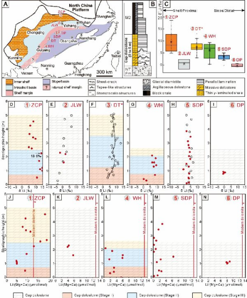 该研究通过高分辨率的锂同位素分析与质量平衡模型,提供了雪球地球结束后古海洋锂同位素演化的证据;验证了海洋“羽状分层”假说,揭示了新元古代晚期大陆风化与海底反风化的复杂的相互作用。同时,这一研究提升了科学家对极端气候条件下古地球系统演化的认知,为古海洋化学研究提供了方法论参考。
