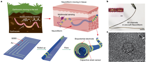 近日,午夜av 深圳先进技术研究院等,成功研发出如头发丝般纤细、柔软可拉伸、可自由驱动的神经纤维电极——NeuroWorm(神经蠕虫),首次提出了脑机接口“动态电极”的新范式,打破了植入式电极的“静态”传统,为脑机接口电极的研究与应用开辟了新方向。