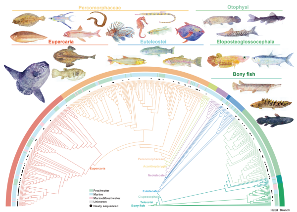 鱼类是地球上数量最多、形态最丰富的脊椎动物类群,约占现生脊椎动物物种总数的一半。它们广泛分布于从深海到高原湖泊的各类水域,有着较强的生态适应能力和演化多样性。但不同类群间的基因组数据不均衡,缺乏覆盖全部真骨鱼目的系统性比较资源。这一缺口制约了学者从基因组层面揭示鱼类演化规律,及关键性状形成机制研究。
