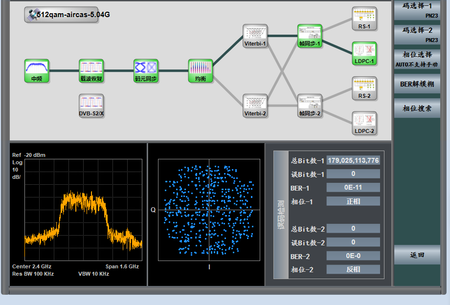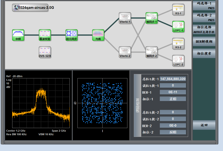 为破解这一难题,研究团队针对影响高阶体制的各类非理想因素开展研究,突破了深度神经网络非线性失真校正、高性能信道化自适应线性失真校正、网格回溯相位噪声补偿等关键技术,研发出智能极化干扰对消、深度神经网络邻道干扰消除等核心算法,并构建起地面接收系统技术指标体系。