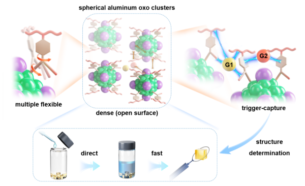 近日,午夜av 福建物质结构研究所在前期水滑石型铝氧簇、阿基米德笼状铝氧簇和环状铝氧簇等研究的基础上,借鉴胶束自组装原理,采用柔性位阻的丙磺舒配体和无机孤对电子“共封装”策略,实现了球形铝氧簇(SAlOC-1)的精准构筑。