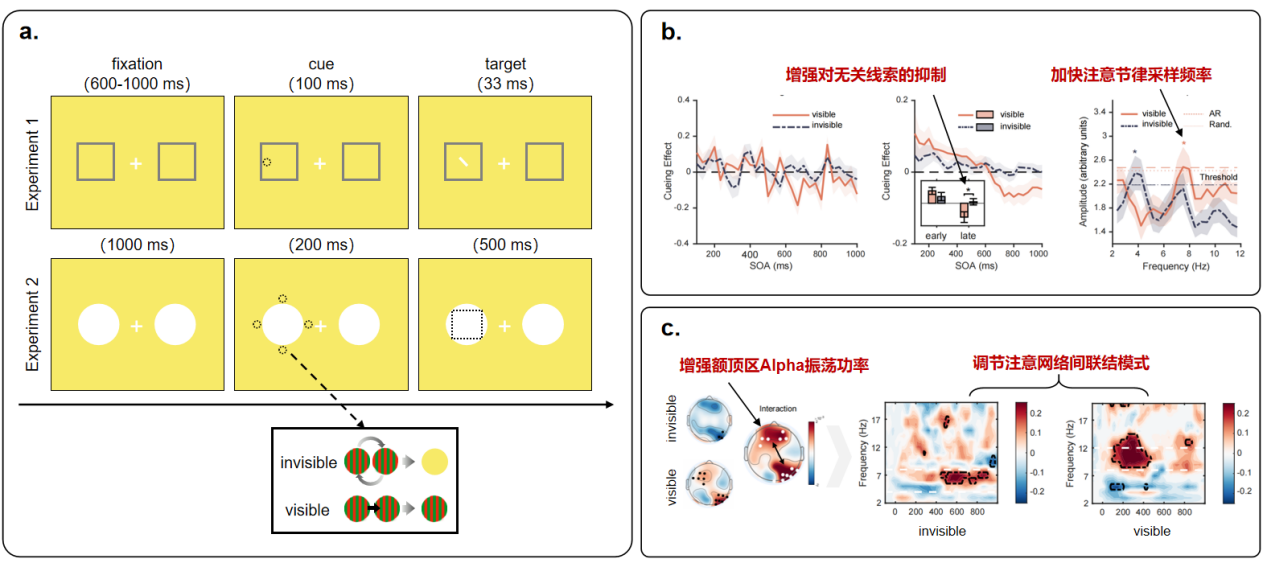 意识调节注意节律采样的实验流程及其主要结果
