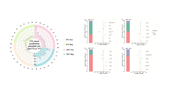 泥炭地作为关键的陆地碳库,其碳循环动态对全球气候平衡具有重要影响。当前,水位下降与气候变暖正威胁泥炭地碳汇功能。此前研究表明,“酶闩”与 “铁门”是湿地碳动态重要的调控机制。这两种机制的适用场景、对碳动态调控的相对重要性,以及温度是否会改变它们的作用优先级,是该领域亟待解决的核心问题。