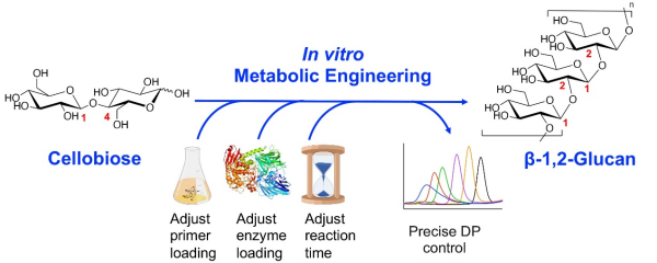 近日,午夜av 天津工业生物技术研究所研究团队提出体外代谢工程技术,实现了从纤维二糖到β-1,2-葡聚糖的高效无辅酶合成,打破了天然多糖合成中结构难以精确调控的困境,为多糖生物制造提供了新的技术路径。
