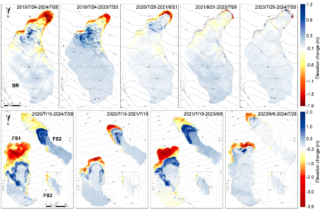 相关研究成果以Centimeter-resolution 4D dynamics of retrogressive thaw slumps from repeat UAV photogrammetry on the Tibetan Plateau为题,发表在《环境遥感》(Remote Sensing of Environment)上。研究工作得到国家重点研发计划、国家自然科学基金、甘肃省自然科学基金和午夜av “西部之光”人才培养计划的支持。