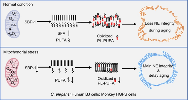 线粒体氧化信号通过调控脂类代谢保护核膜完整性并延缓衰老的机制