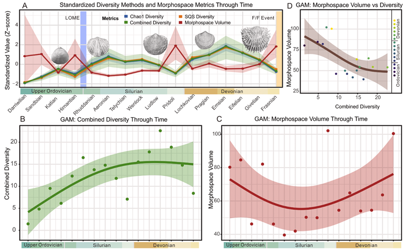 该研究首次将分类学多样性与形态演化弹性相剥离,为内部演化动力学如何决定类群抗灾能力提供了直接的深时化石证据。研究揭示,在一个类群面临大的生态危机前,属种数量峰值所呈现的繁盛状态或具有高度脆弱性;真正决定类群存续的关键在于其功能适应灵活性与形态演化可能性。这一发现重塑了学界对古生代海洋大灭绝机制的理解,也为应对现代生物多样性危机提供了重要启示。