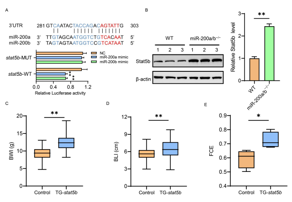 miR-200a/200b通过靶作用stat5b调控黄颡鱼的生长与饲料转化率