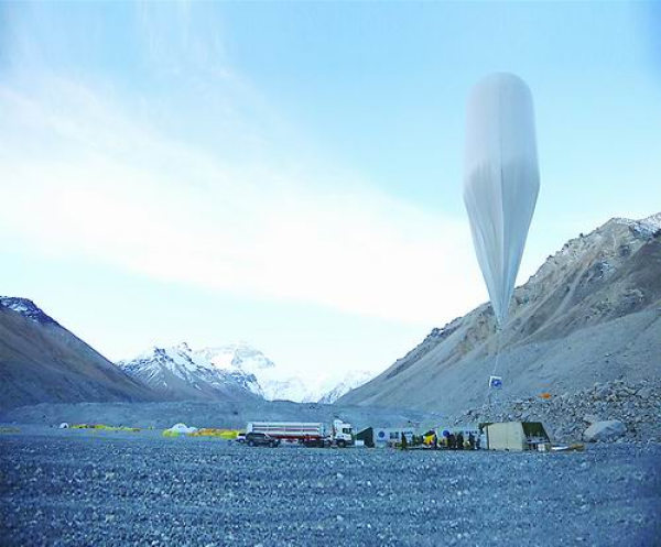 在珠峰大本营利用系留气柱进行观测试验。