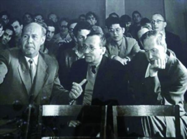 1957年春,28岁的周光召被派往苏联杜布纳联合原子核研究所(以下简称杜布纳研究所)。该研究所位于苏联莫斯科州北端,以10GeV的质子同步加速器为基础,集合社会主义阵营各国的力量共同开展高能物理研究。作为主要成员国之一,中国派遣的科学家为研究所的发展作出了重要贡献,这支高能物理的理论和实验队伍也得到了良好的培养和锻炼。