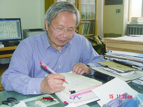 王祖望在修改《动物分典》稿件。受访者供图