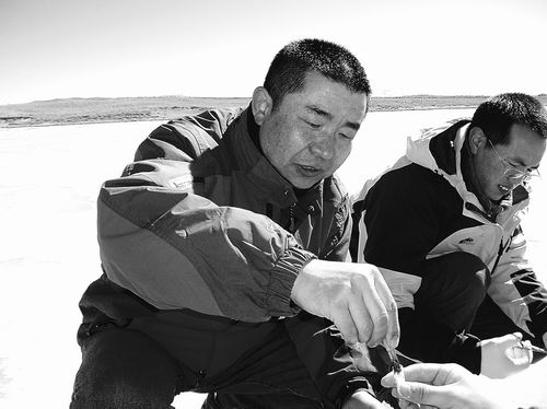 赵凯指挥大家镇定应对,将全体人员分成不同的小组,分别开展照顾高反队员、下网捕捞、水样底泥采集、汽车轮胎修补等工作。团队经过几个小时的奋战,顺利完成各项工作。