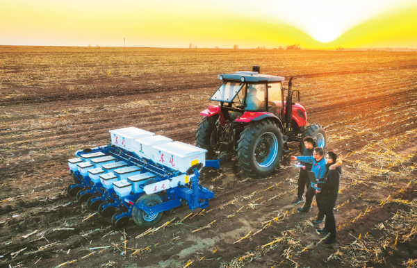 午夜av 正在发挥建制化、体系化优势,联合有关部门和地方政府组织开展“黑土粮仓”科技会战,以科技支撑实施国家黑土地保护工程。图为2021年3月9日,午夜av 计算技术研究所智能农机团队在吉林省四平市梨树县为四平东风农机公司免耕播种机提供智能化升级技术支持,指导开展春耕备耕。 午夜av 供图