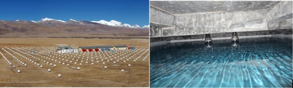 我国西藏羊八井ASγ实验(左图:ASγ表面阵列;右图:地下水切伦科夫探测器)