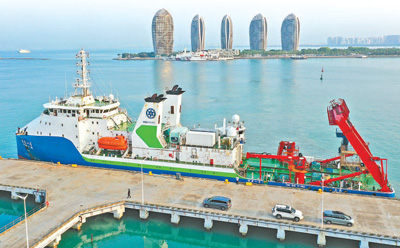 5月21日,完成南海西北陆坡一号沉船第一次考古调查的“探索一号”科考船携“深海勇士”号载人潜水器抵达三亚(无人机照片)。新华社记者 郭程摄