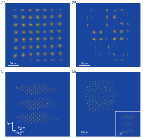 数千原子无缺陷二维和三维阵列重排实验结果图