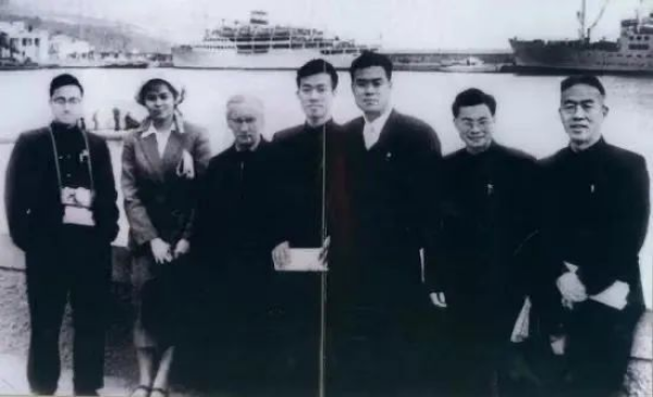 访苏代表团(右一赵九章、右二钱骥、右三卫一清、左一杨嘉墀)。