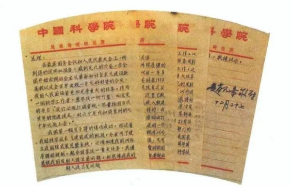 赵九章于1964年12月27日给周恩来总理的关于中国研制人造卫星建议的信。