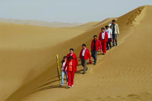 2006年,“彭加木突击队”开展塔里木沙漠公路风沙防治工程野外勘测工作。新疆分院供图