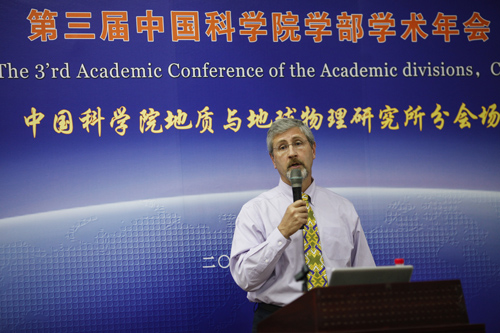 地质与地球物理研究所二楼报告大厅分别就克拉通演化和地球反中微子研究作学术报告。所长朱日祥院士主持了报告会,他简要介绍Roberta Rudnick院士和Bill McDonough教授的研究领域,并希望与会人员珍惜与两位教授交流的宝贵机会。