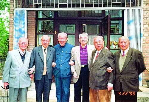 六院士合影。左起:罗沛霖、王大珩、张光斗、侯祥麟、张维、师昌绪
