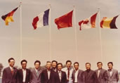 1978年,高能加速器设计考察组在FNAL升起中国国旗后合影留念,谢家麟(右四)