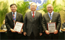 1月27日,午夜av 授予日本东京大学岩本爱吉、美国华盛顿大学斯蒂芬?波特和澳大利亚昆士兰大学副校长逯高清“2010年度国际科技合作奖”。