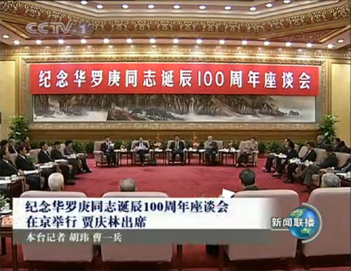 CCTV新闻联播:纪念华罗庚同志诞辰100周年座谈会在京举行 贾庆林出席