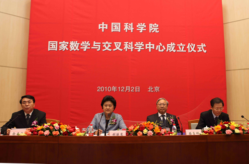 全国人大常委会副委员长、中科院院长路甬祥陪同考察和出席成立仪式。路甬祥指出,中科院国家数学与交叉科学中心要树立原始创新的自信心,攻坚克难勇攀高峰,成为引领我国数学研究的骨干力量,成为国际一流的数学交叉和应用研究的科研平台。要做改革创新的先锋,积极探索符合数学交叉应用研究特点,既有前瞻部署、稳定支持,又要竞争择优、动态优化的组织管理体制,发挥示范带动作用。要立足创新实践,建设形成一支甘于寂寞、不畏艰难、勇于探索、潜心钻研的骨干队伍,成为国际一流的数学与交叉应用领域人才培养基地。要大力弘扬优良学术传统,建设有利于交叉合作的创新环境与文化氛围,在科技界学风建设中发挥示范作用。