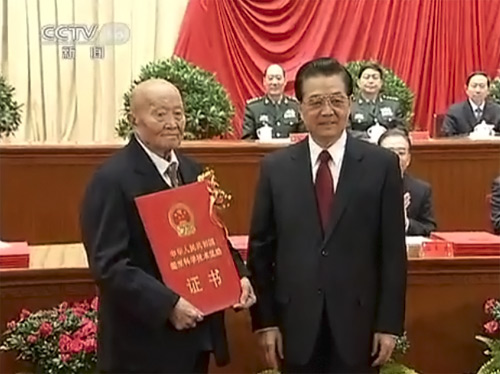 金属研究所名誉所长、著名材料科学家师昌绪,中国工程院院士、上海交通大学医学院附属瑞金医院终身教授、著名血液学专家王振义颁发奖励证书,并同他们热情握手,表示祝贺。随后,胡锦涛等党和国家领导人向获国家自然科学奖、国家技术发明奖、国家科学技术进步奖和中华人民共和国国际科学技术合作奖的代表颁奖。