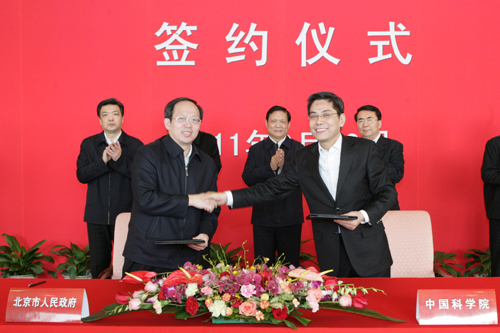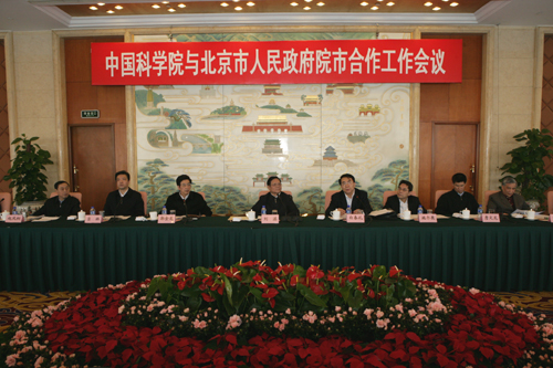 对北京市委、市政府长期以来给予院市科技合作工作的大力支持表示感谢。他指出,北京市未来将围绕建设中国特色世界城市的发展目标,重点建设以中关村国家自主创新示范区为核心的我国创新发展的核心引领区和具有全球影响力的科技创新中心。新形势、新任务为进一步加强中科院和北京市合作,提供了更加广阔的舞台和空间,院市双方发展目标的实现,更加需要双方在未来,特别是在“十二五”期间认真思考和筹划,继续落实合作机制,不断调整优化合作布局,深入推动重点合作工作,共同建设区域创新集群。