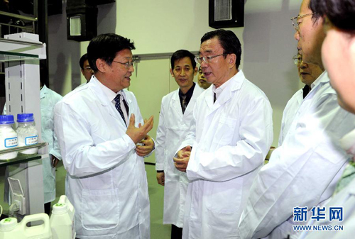 天津工业生物技术研究所、国家超级计算天津中心,贺国强与科研人员亲切交谈,详细了解技术研发和产品应用等情况,要求坚持产学研相结合,加大自主创新和科研攻关力度,加快科技成果向现实生产力转化,培育发展战略性新兴产业,不断提高企业国际竞争力。