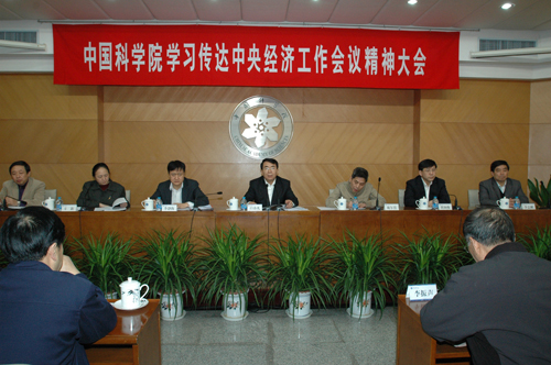 在京召开会议,学习传达2011年中央经济工作会议精神。中科院院长、党组书记白春礼,党组副书记方新分别传达了胡锦涛总书记、温家宝总理在中央经济工作会议上的重要讲话精神,白春礼就中科院学习贯彻会议精神提出了要求。中科院在京的院党组成员、院领导,副部级以上老领导,京区单位党政主要负责人,院机关副局长以上领导干部,院机关离退休党支部书记等出席会议。