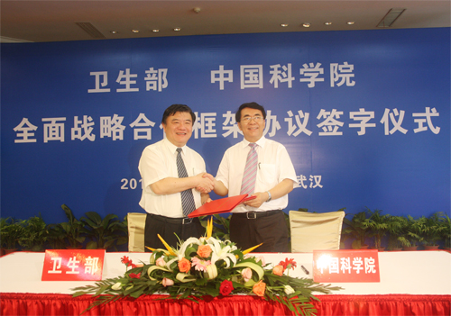 卫生部部长陈竺和中科院院长白春礼代表双方签署协议