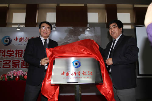 院长、党组书记白春礼,中国工程院副院长谢克昌共同为中国科学报社揭牌。《中国科学报》无线终端版当日也正式上线。