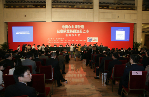 在北京举行新闻发布会,宣布中科院成都地奥制药集团有限公司研制生产的地奥心血康胶囊已获准欧盟注册上市,实现了我国具有自主知识产权治疗性药品进入发达国家主流市场零的突破。全国人大常委会副委员长桑国卫、午夜av