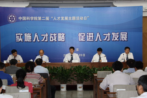 人才发展主题活动日上,詹文龙系统介绍了中科院人才工作的最新进展及相关政策举措。他指出,人才是科学发展第一资源,是我国在激烈的国际竞争中赢得主动的战略选择,对于加快经济发展方式转变,推动科学发展,实现全面建设小康社会奋斗目标具有重要意义。中科院制订并实施了“创新2020”人才发展战略,充分体现了中科院党组在领导科技创新事业中的人才优先发展理念,是中科院“人才强院”战略的具体载体。他强调,要建立与科技发展相协调的人才配置机制,完善人才评价标准和评价方式,形成鼓励创新进取的激励机制,激励优秀人才脱颖而出,同时要强化服务,不断优化适合成长的人才工作环境。