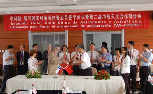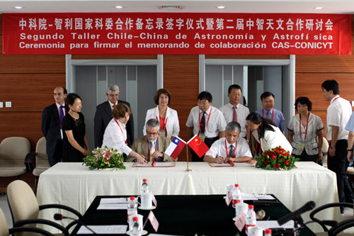 智利国家科委国际合作部、天文部,智利驻中国大使馆,中国科技部国际合作司、基础司,中科院基础科学局、国际合作局、国家天文台,国家自然科学基金委数理学部的有关领导和中智双方天文学家代表参加了签字仪式。