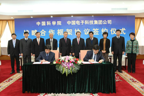 院长白春礼、中国电子科技集团公司总经理熊群力出席签约仪式并讲话,中科院副院长阴和俊、中国电科集团副总经理毛远建代表双方签署战略合作框架协议。