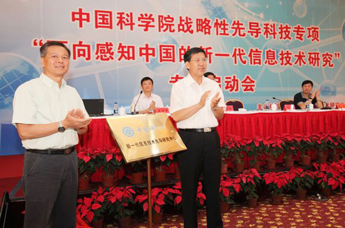 在14日上午召开的全体大会上,阴和俊为“新一代信息技术先导研究中心”揭牌,代表中科院党组对该中心的成立和信息技术先导专项的正式启动表示热烈祝贺,对专项启动前期的各项工作给予充分肯定。