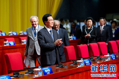 9月18日,中国国家主席胡锦涛在天津出席发展中国家科学院第十二次学术大会暨第二十三届院士大会开幕式并致词。新华社记者黄敬文摄