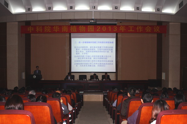 华南植物园召开2013年全园职工大会,传达、学习中科院2013年工作会议精神,回顾、总结2012年华南植物园的主要工作进展,并重点就实施“创新2020”及2013年重点工作进行了全面部署和动员。全园职工、部分离退休职工和研究生代表约300人出席会议。大会由园副主任、纪委书记魏平主持。