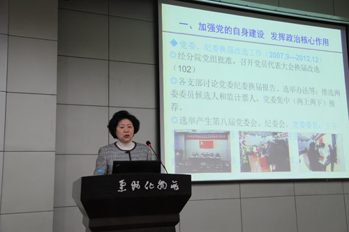 赵秀茹总结了党委、创新文化建设和离退休工作。她指出,2012年兰州化物所党委在院党组、分院党组的领导下,坚持以邓小平理论、“三个代表”重要思想、科学发展观为指导,认真学习贯彻党的十八大精神以及院党组会议精神,围绕“创新2020”,在加强党的自身建设、加强党支部建设和党员教育管理、创新文化建设、工青妇及离退休等方面开展了大量卓有成效的工作。2013年所党委将认真学习贯彻十八大精神和党章,学习贯彻院工作会和党建会议精神,进一步加强党支部和党员队伍建设,加强制度的制定、执行、监督和修改完善,积极开展反腐倡廉教育、党风党纪和法制教育,进一步加强廉洁从业风险防控体系建设,大力加强作风建设,围绕建所55周年举办系列庆祝活动,做好职代会和工青妇换届工作。培育有利于创新文化建设的文化氛围和环境,发挥党委的保证监督作用和支部的战斗堡垒作用,使全所党员干部和职工及研究生保持奋发向上的精神风貌,为“创新2020”和研究所“一三五”规划的实施提供精神支撑与保障。