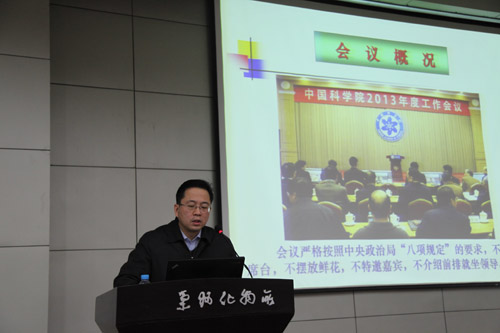 王齐华传达了中科院2013年度工作会议上白春礼院长作的题为《全面贯彻落实党的十八大精神,建设“三位一体”午夜av