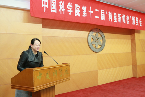 院长、党组书记白春礼为一等奖获得者颁奖并讲话。光明日报社副总编辑、本届“科星奖”评委李春林,科技日报社总编辑、本届“科星奖”评委陈泉涌,中科院副秘书长、宣传工作领导小组副组长潘教峰,中科院办公厅主任、本届“科星奖”评委会副主任李婷等为二、三等奖获得者颁奖。