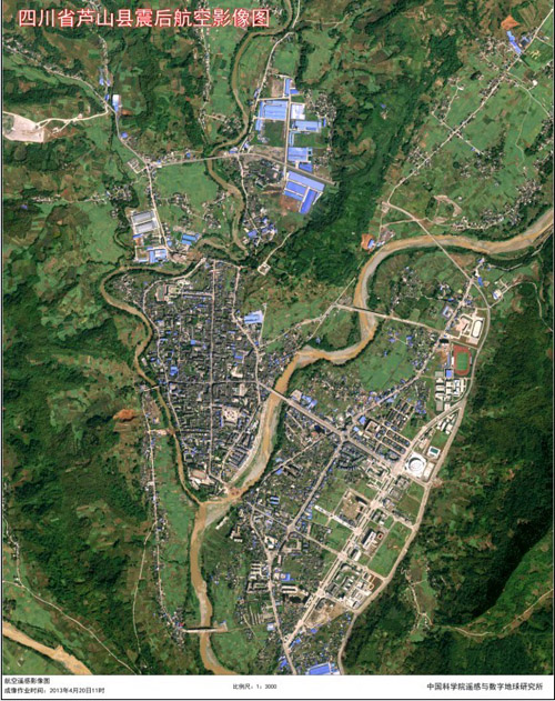 芦山地震发生后,遥感地球所紧密启动航空、航天遥感数据获取,灾情解译与分析等各项遥感抗震救灾工作。研究所于20日派遥感飞机获取灾区高分辨率航空遥感数据,数十位科技人员连夜进行处理,第一时间面向国内抗震救灾相关部门、单位进行数据共享。截至25日零点,航空数据以多种形式共分发给国务院应急办、中国地震局、民政部、交通运输部、国土资源部、总参谋部、国家安全部、国家测绘地理信息局、国家气象局、水利部、环保部、教育部、文化部等13个部委25家单位和四川省政府和地震局,数据量逾4200GB。利用震后航空遥感数据制作灾区图像,分别报送国家地震救援队、四川省抗震救灾指挥部、国务院应急办及国家相关部委。4月23日,遥感地球所应邀派专家赶赴雅安,参加四川省政府组织的灾情会商。